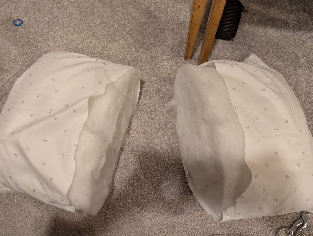 1. Cut pillow in half. (My pillow was 20×13 after cut in half.)