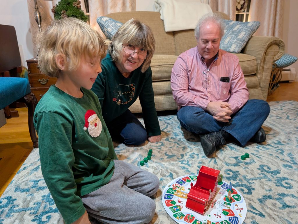 Happy New Year everyone! We had quite the holiday season! We started Christmas Eve off with my parents joining us for dinner… And Patricia had a really high fever! She tucked herself into bed before my parents arrived and slept thru dinner. She did eventually wake up and we played some games, put cookies out for Santa and sent the kids off to bed.