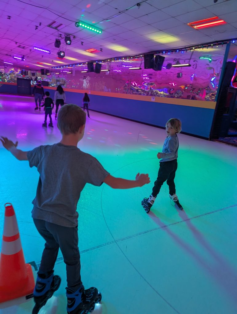 Finally coming up for air! As you know I LOVE Halloween. As you also know my kids were born 4 days apart in early November and I LOVE planning their birthdays. Basically mid October to mid November is the most busy period for me all year. Julius asked in July for an “electric car party” which I spent many hours agonizing over what to do and coming up with several ideas. I thought my last one (giant race track with matchbox car racing plus solar car building) was a winner for sure, but Julius went to a friend’s birthday at the roller rink and decided he wanted a skating party. Honestly it was a relief for me. He was again inviting his whole class which is a lot of kids. Then there is always the awkwardness where people ask if they can bring siblings (been there done that too, no shame) and I have to legitimately figure out if I’ll have enough space or not. At the roller rink we could allow siblings because they have infinite space. Plus Will and I both love roller blading so it’s fun for us too! It was insanely expensive though. I think overall it was probably worth it.
