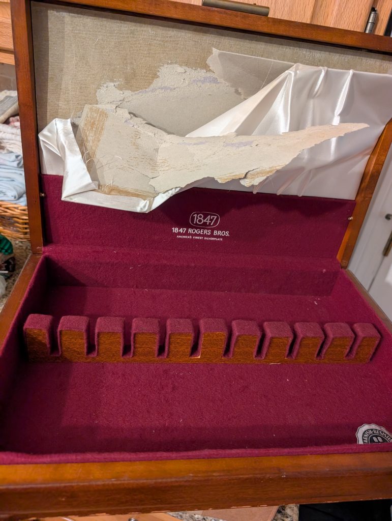 Speaking of organized I want to show you the silly thing I made for Will for Christmas. So for a while I’ve been wanting to make Will a board game carrying case. The idea is for him to take a bunch of games out of their boxes and bring them in a hard sided carrying case. Will usually brings a bunch of boxes of games and the boxes get all crushed. He’s tried bringing just the components in his backpack but then the cards and boards get bent. This, in theory would solve those problems! The key dimension is that it had to be carry on size. I bought a box at the thrift shop before I realized that it would be too big to fit in the overhead or under the seat in front of him. I eventually found a utensil box at Savers that fit the bill: it was small enough for a carry on in all dimensions, and it had a cover with some depth to hold game boards. I would use the bottom to hold cards. If I’d made the box myself completely I would have made the bottom a bit taller so I could fit cards on their side.