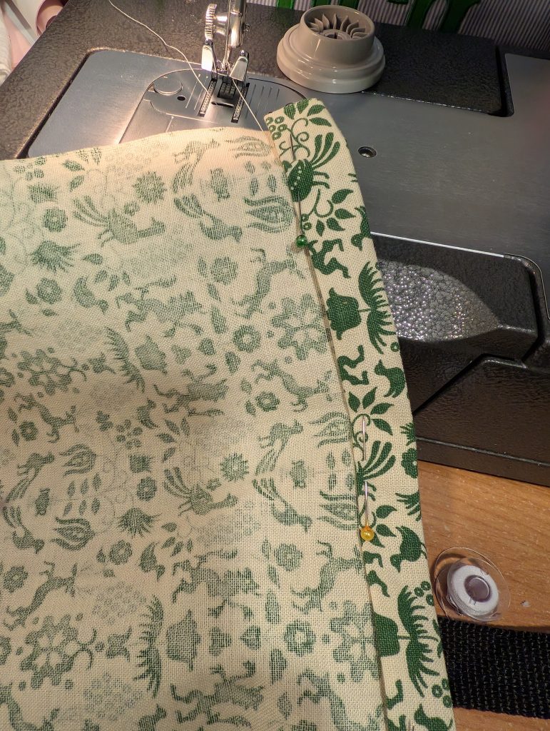12. Pin entire unfinished side of collar to cape on black fabric only. Stitch.