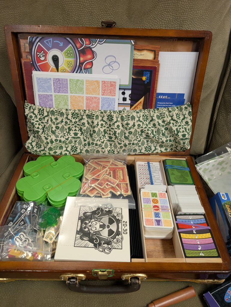 We took it to Nashville for it’s maiden voyage and it fit A LOT of games; especially card games. It’s not going to fit Dark Tower or Fireball Island, but it will fit a bunch of fun favorites. Check out everything we took: